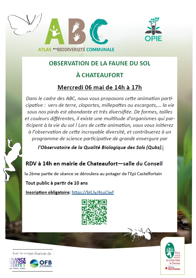 Vers de terre, cloportes, millepattes ou escargots… la vie sous nos pieds est abondante et très diversifiée. De formes, tailles et couleurs différentes, il existe une multitude d’organismes qui participent à la vie du sol ! Lors de cette animation, vous vous initierez à l’observation de cette incroyable diversité, et contribuerez à un programme de science participative de grande envergure par l’Observatoire de la Qualité Biologique des Sols (Qubs).